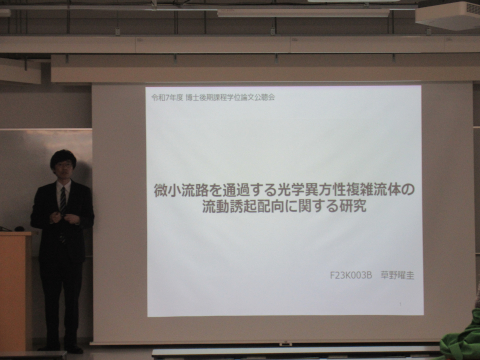 博士後期課程3年の草野曜圭氏の公開論文発表会が行われました.